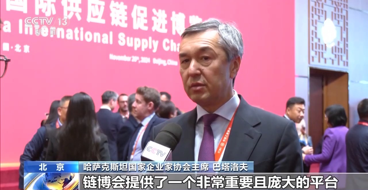 哈萨克斯坦国家企业家协会主席 巴塔洛夫:链博会提供了一个非常重要且庞大的平台,通过这个平台,能为技术交流展开投资合作提供更多新的机会。