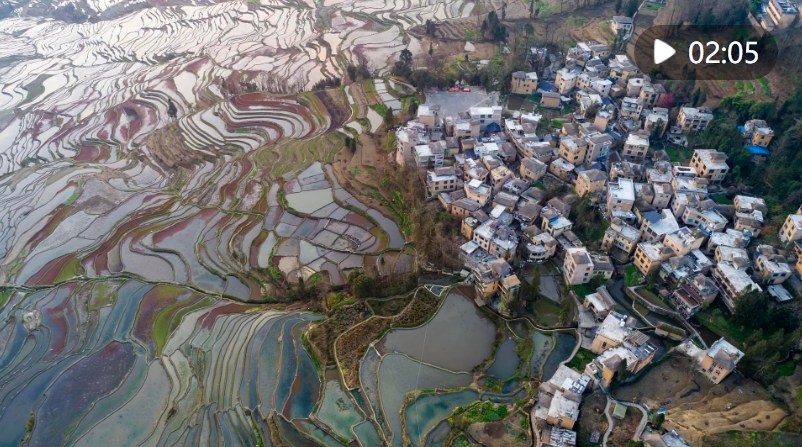 近日,位于云南省红河哈尼族彝族自治州元阳县的哈尼梯田迎来了最佳观赏期,梯田旁的阿者科村也吸引了更多游客前来“打卡”。