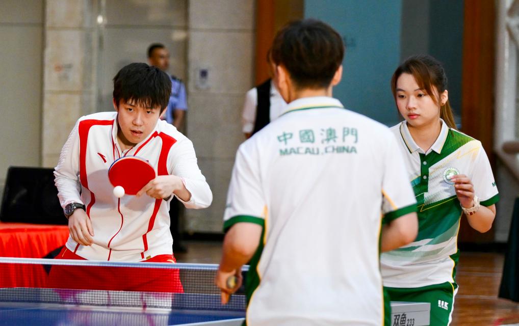 社区还布置了“乒乓球投篮”的互动小游戏。与国乒队员孙颖莎搭档的澳门市民叶赛华说:“很开心能有机会和国家队健儿们一起搭档互动,也很荣幸。欢迎他们下次再来澳门。”