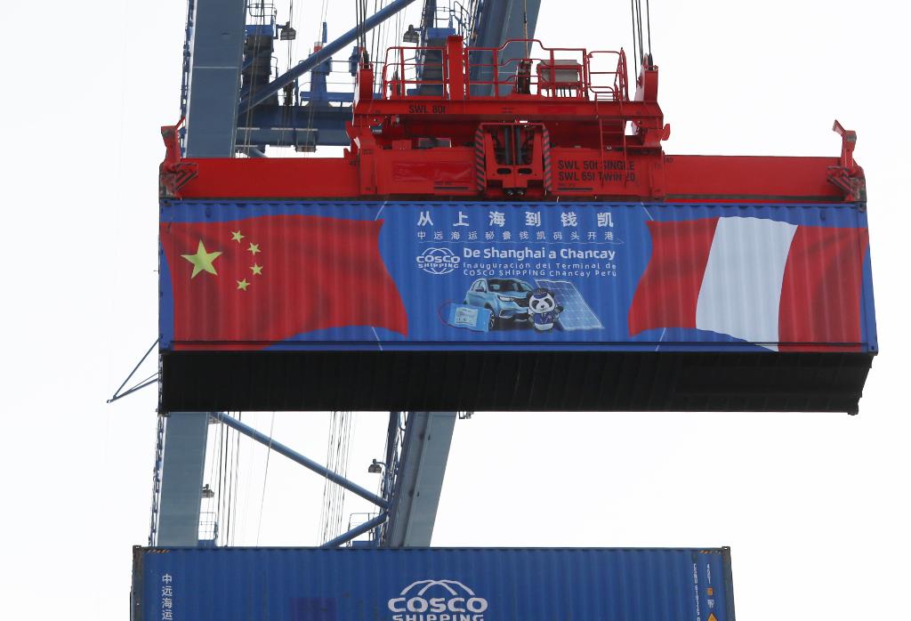 11月14日,夜幕中的钱凯港灯火通明,吊桥将一个集装箱从“秘鲁轮”卸下,将另一个集装箱装上“新上海轮”。这个中秘共建“一带一路”重点项目正式投入运营,一条新时代亚拉陆海新通道由此诞生。