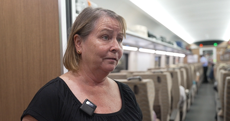 黄复胜:“我感觉坐了这个火车,觉得很舒服,然后很快就可以进火车,check in(进站)和 check out(出站)都是很方便的。”