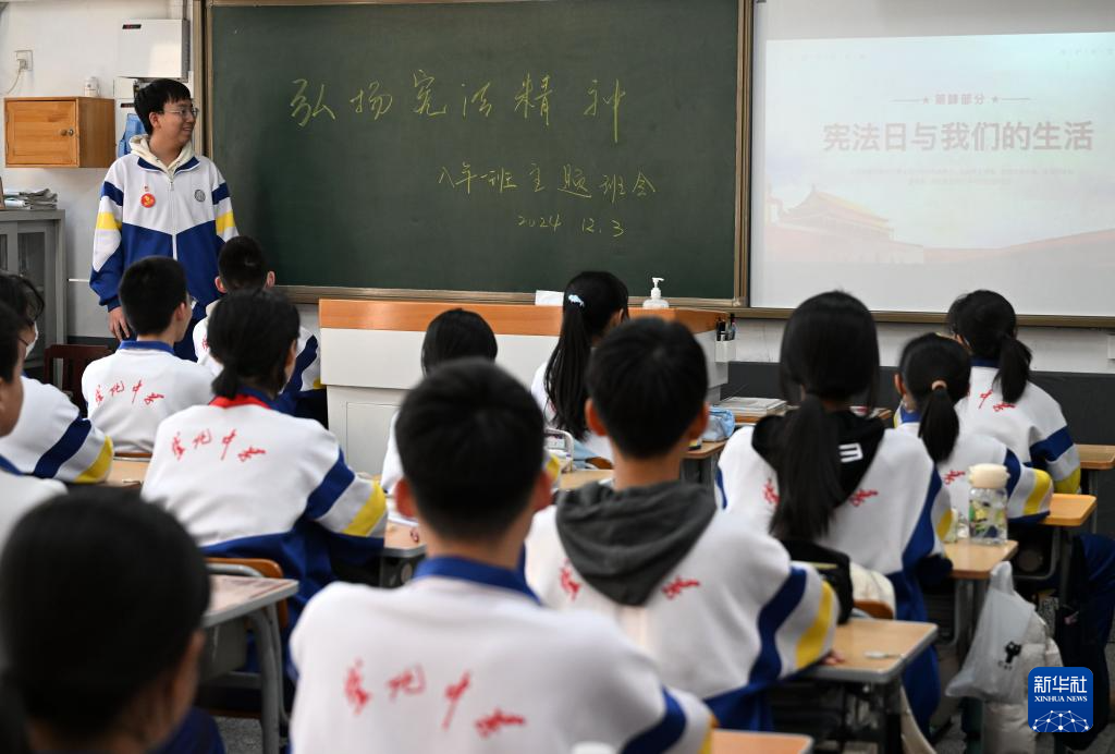 12月3日,天津市南开区崇化中学学生在国家宪法日教育宣传主题班会上进行分享。