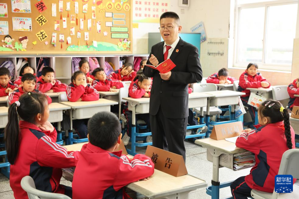12月3日,贵州省铜仁市玉屏侗族自治县人民检察院的检察干警在玉屏侗族自治县第二小学给学生普及宪法知识。