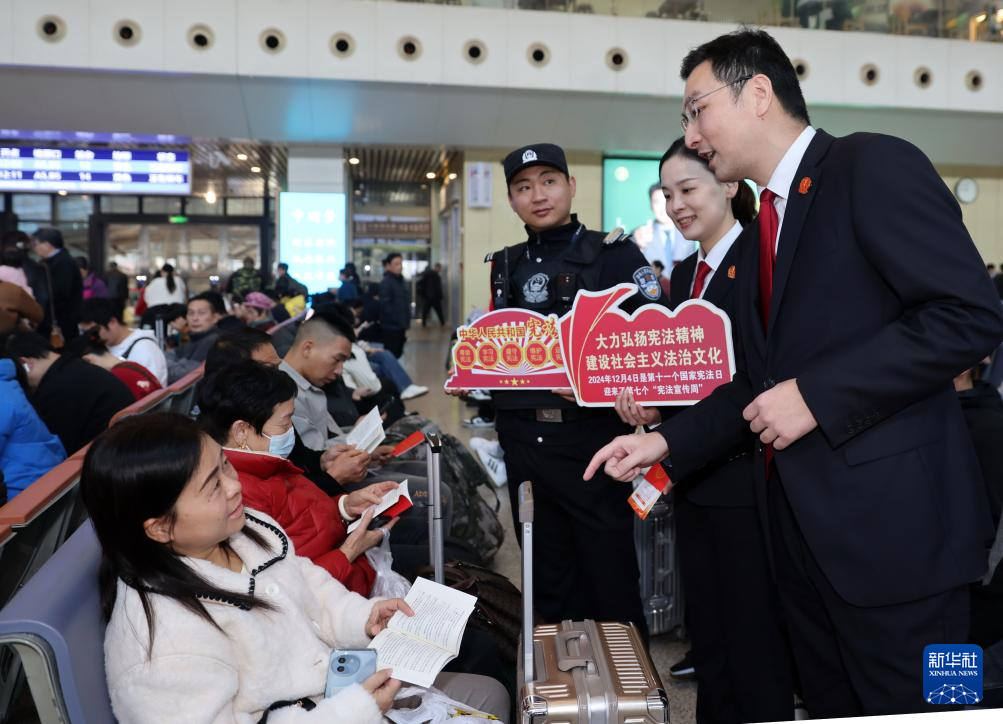 12月3日,武汉铁路运输中级法院法官在武汉火车站为旅客宣传宪法知识。