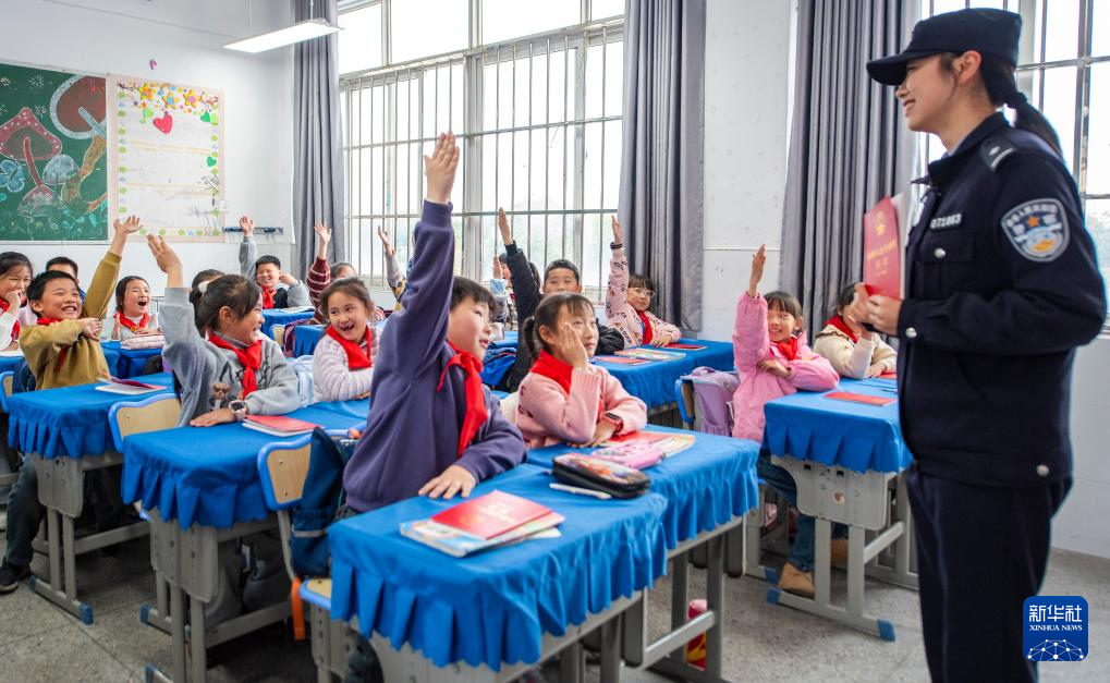 12月3日,在安徽省芜湖市繁昌区孙村镇中心小学,民警为小学生讲解宪法知识。