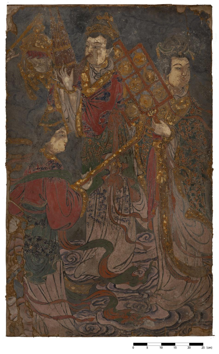 中国壁画根据用途可分为三类:墓葬壁画、石窟壁画和寺观壁画。明代时期,寺观的兴建和佛道经典的刻印让壁画得到广泛发展。清代时期,壁画大多由当地民间画工行会组织绘画,他们结合民俗特色创造壁画,更加注重装饰性。青岛市博物馆现收藏着四组清代寺观壁画,以宗教人物与故事为主要题材,初步判断绘制年代为清晚期,国家二级文物,蕴含胶东半岛地区寺观壁画的独特艺术性,具有较高的历史、艺术、科学价值。