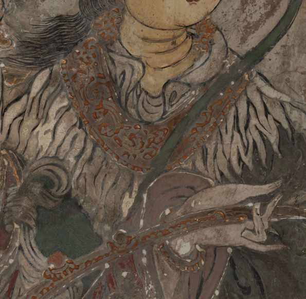 图:“天人巡行图”中的人物衣领有类似羽毛形状的装饰带