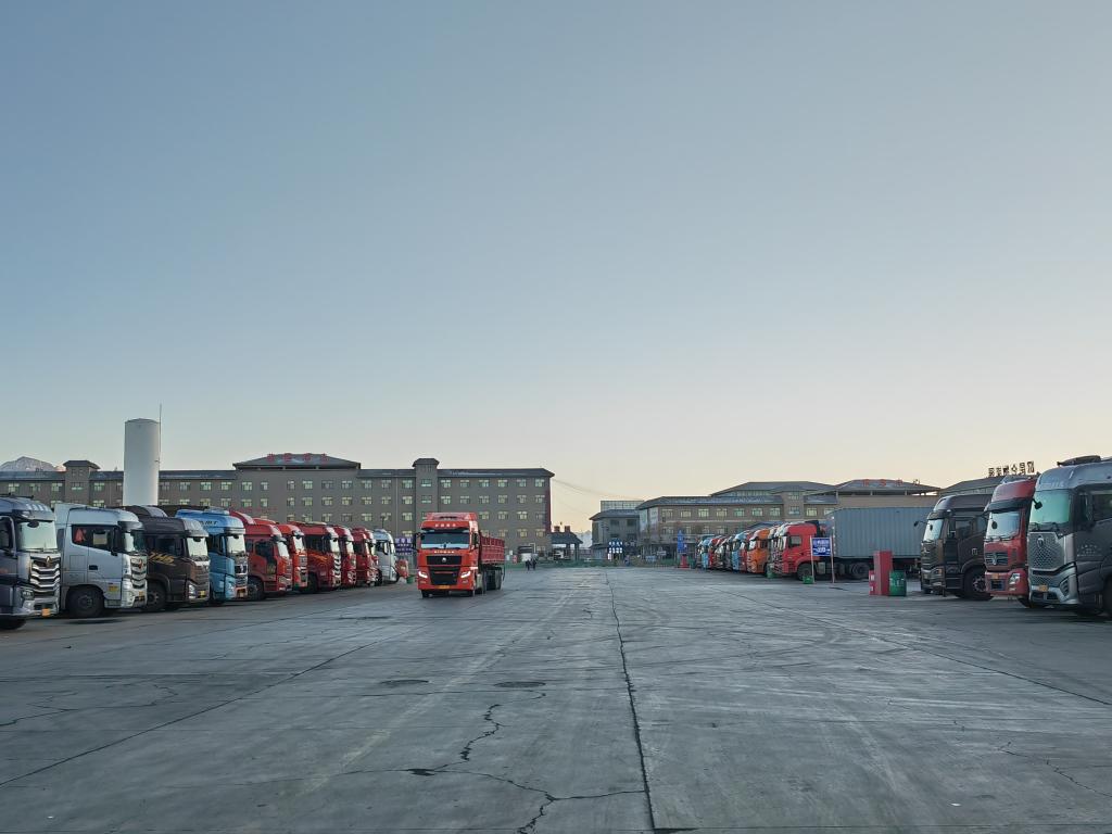记者走进青海省格尔木昆仑物流园,一排排大货车整齐排列,司机们有的寒暄聊天,有的打盹小憩,还有些忙着跟亲朋好友视频聊天。