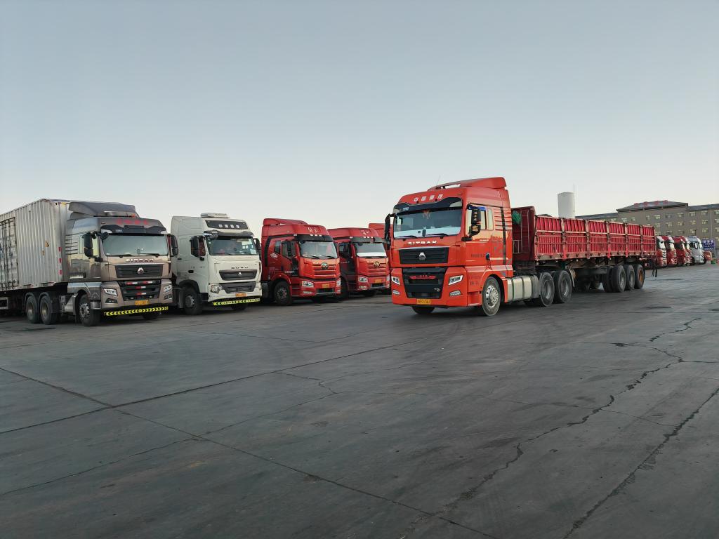青海省格尔木昆仑物流园内的货车整齐排列。新华社记者 王浡 摄