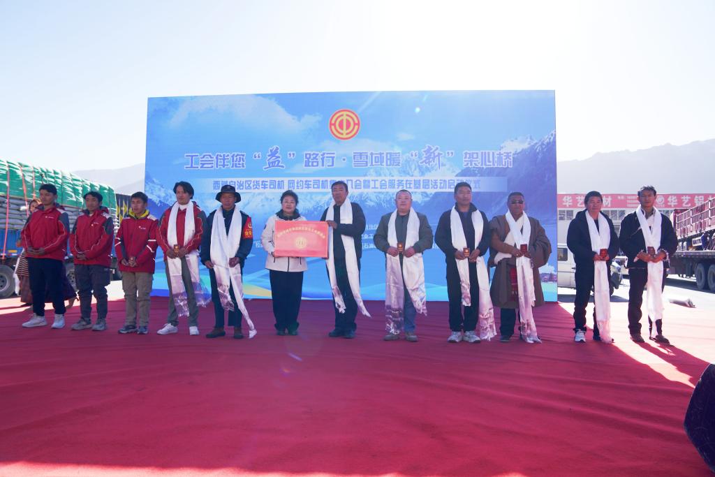 12月5日,西藏自治区货车司机、网约车司机集中入会暨工会服务在基层活动启动仪式在拉萨城投物流园举行。新华社发