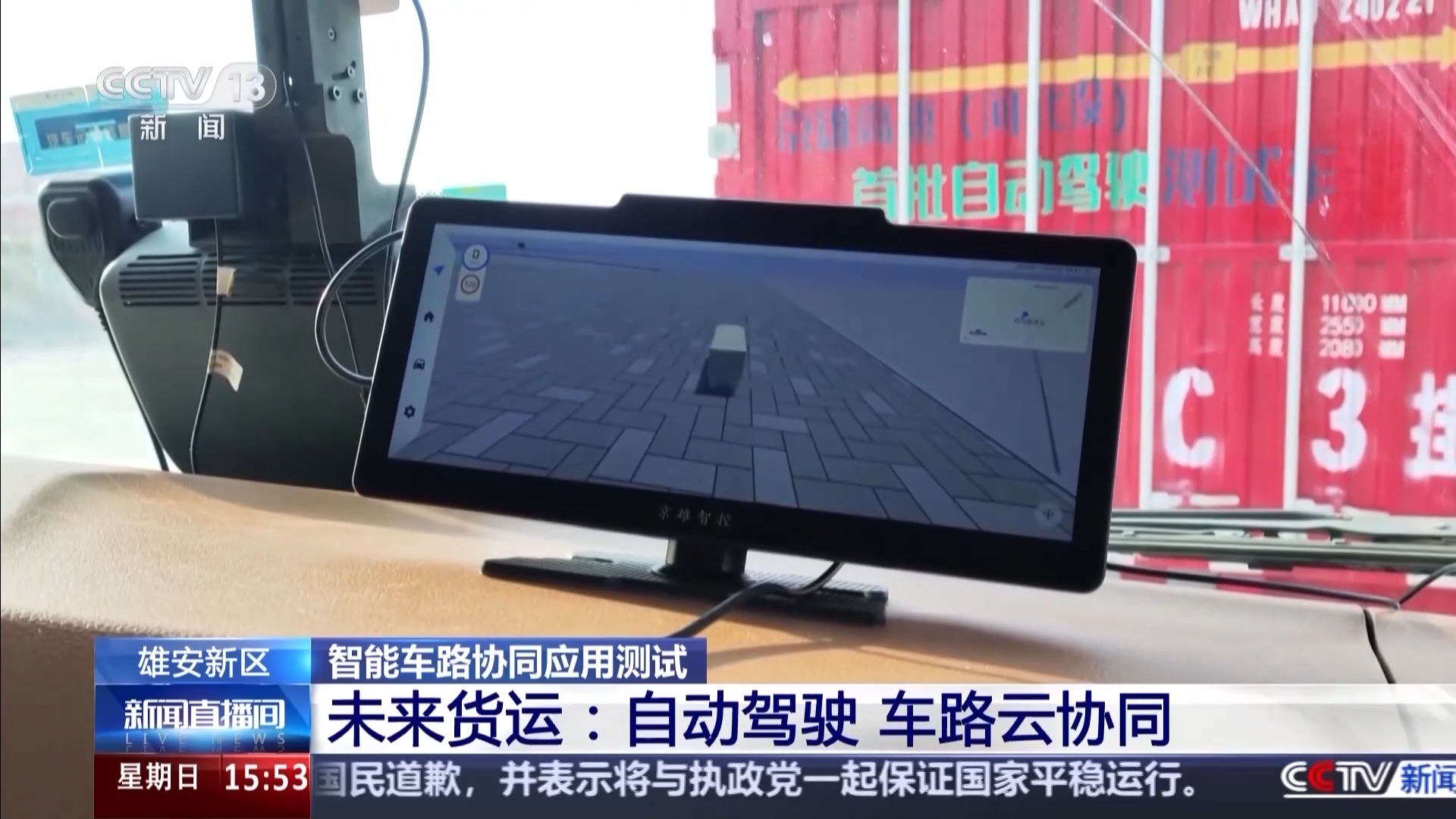 在京雄高速公路河北段,三辆大货车依次通过收费站,驰骋在高速公路上。三辆货车中,除了第一辆货车是需要司机手扶方向盘驾驶外,后面两辆货车的司机双手都是离开方向盘的,而且三辆货车之间的距离要比正常人工驾驶距离要近。项目负责专家表示,这种1拖2的自动驾驶模式是未来货运自动驾驶的尝试。