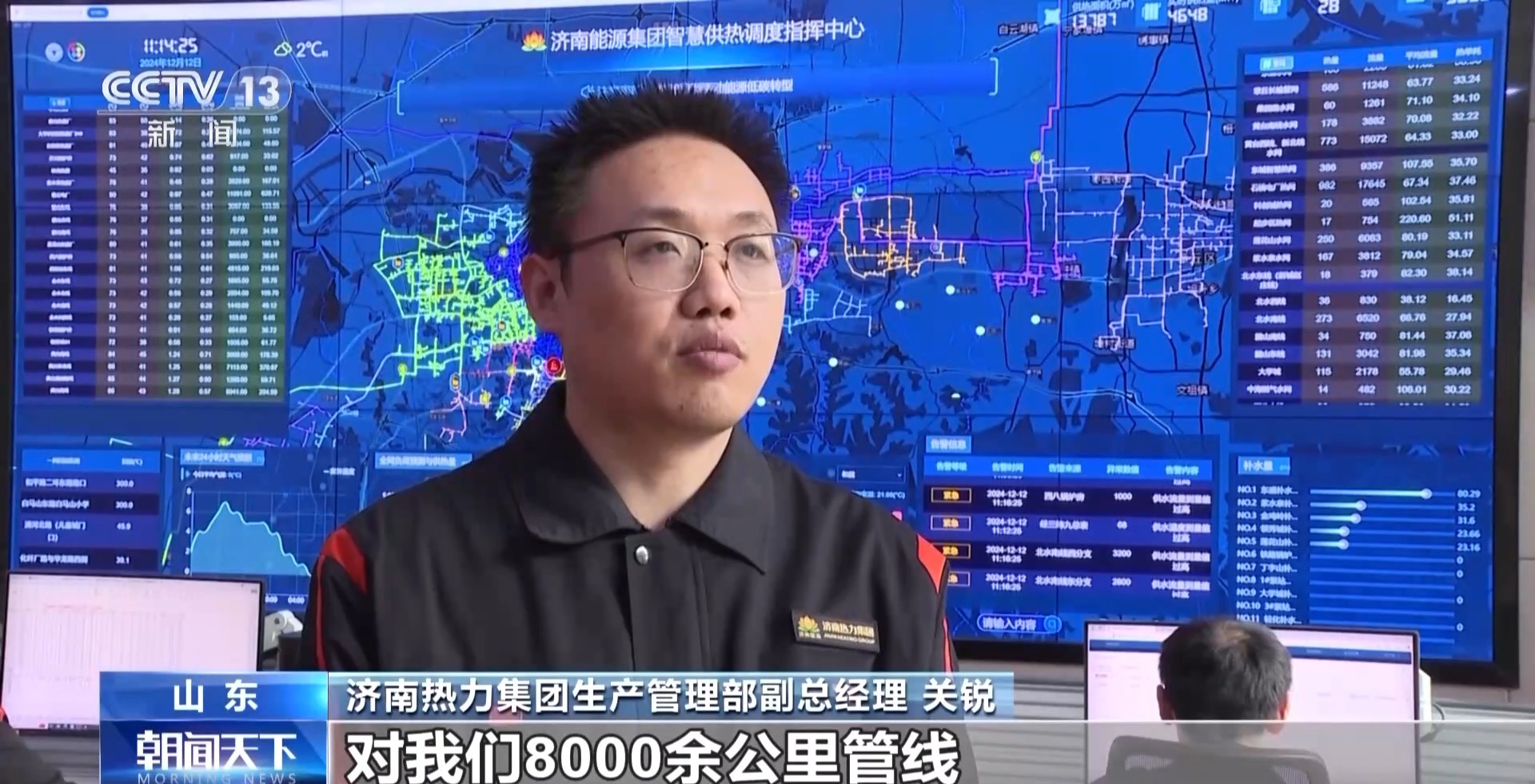 济南热力集团生产管理部副总经理 关锐:近千余名供暖管家,对8000余公里管线和3200余座换热站进行24小时的巡视检查。同时,我们所有的应急抢修队伍也是24小时随时待命,以应对突发状况。