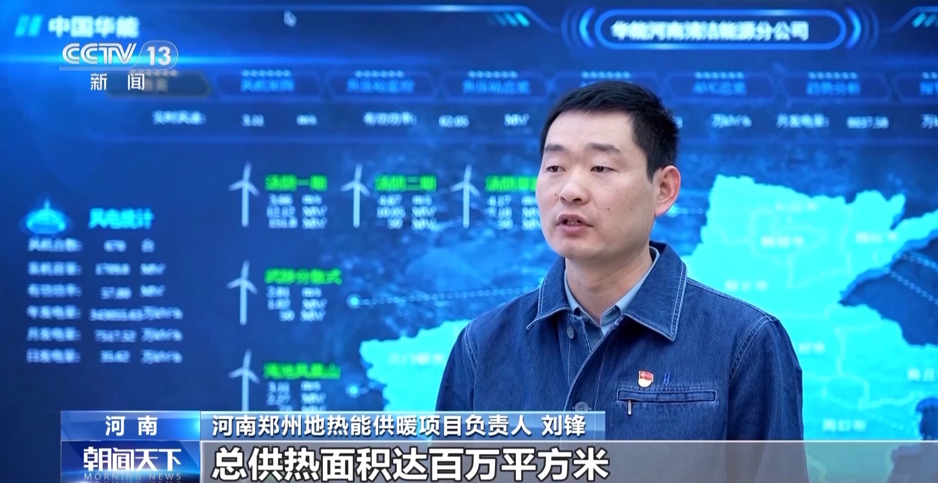 河南郑州地热能供暖项目负责人 刘锋:总供热面积达百万平方米,每年可替代标准煤约7000吨,减少碳排放1.2万吨。