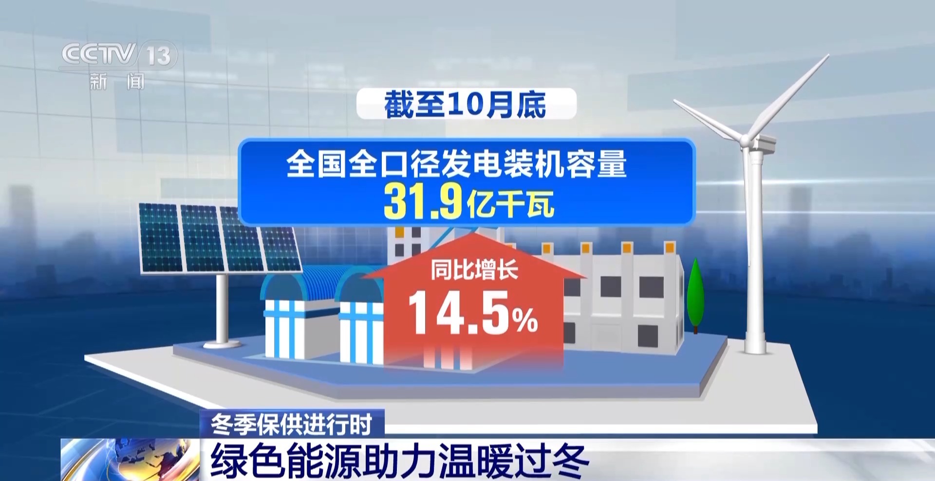 今年以来,我国清洁能源电力建设保持较快增长。截至10月底,全国全口径发电装机容量31.9亿千瓦,同比增长14.5%,其中并网风电、太阳能发电装机合计12.8亿千瓦,占总装机容量的比重提高至40.1%。发电生产持续绿色低碳转型的同时,发电供应能力进一步增强。