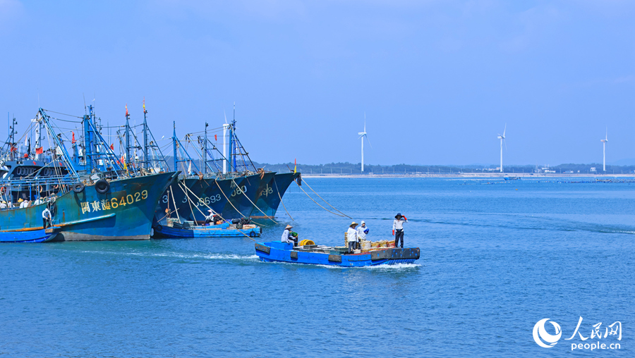 冬日,福建省漳州市东山县澳角村码头依然一片繁忙景象,一艘艘钢铁渔船满载着新鲜的渔获徐徐靠港。