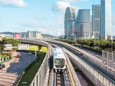 行驶中的澳门轻轨列车。澳门特区政府旅游局供图