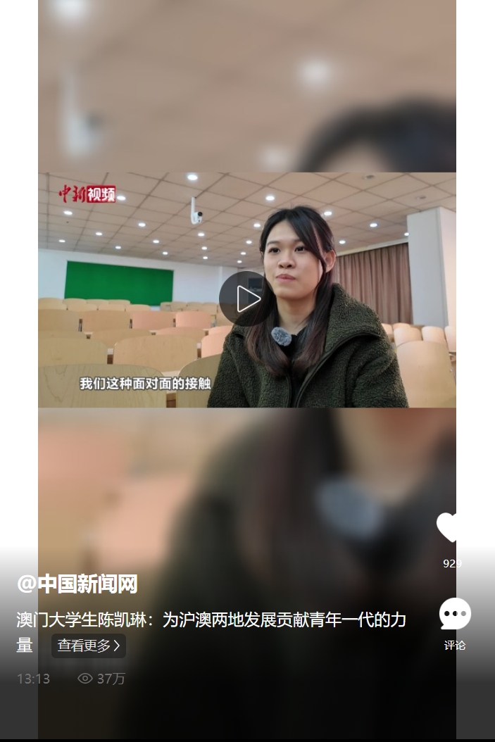 澳门大学生陈凯琳:为沪澳两地发展贡献青年一代的力量