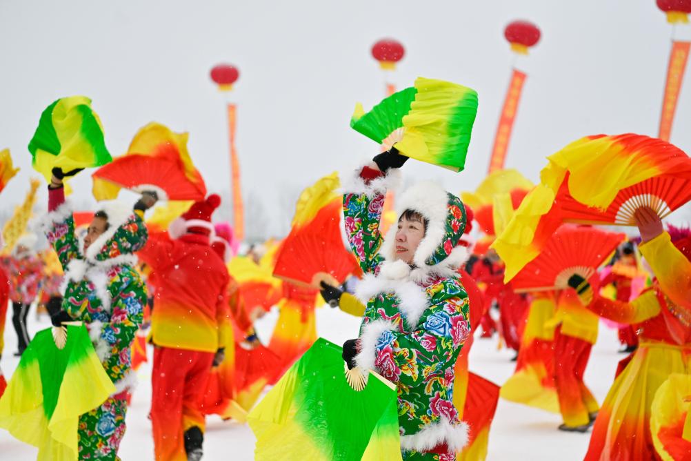 ↑12月23日,当地村民在比赛后表演秧歌。新华社记者 颜麟蕴 摄