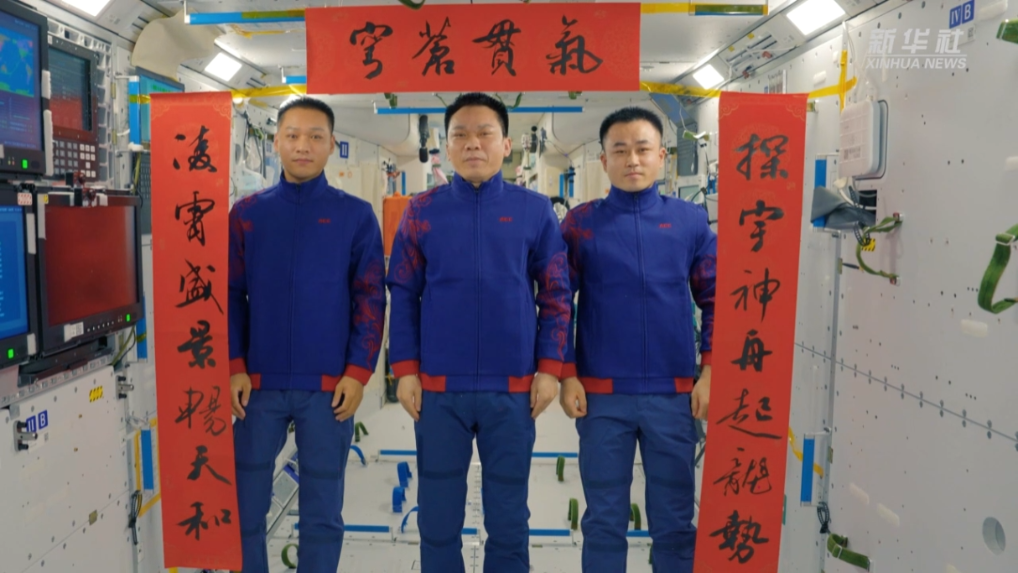 2024年2月9日,正在太空出差的神舟十七号航天员乘组专门录制视频,在中国空间站给大家拜年,祝福伟大祖国龙腾虎跃、繁荣昌盛,祝福全国各族人民龙年大吉、顺遂安康。(视频截图)