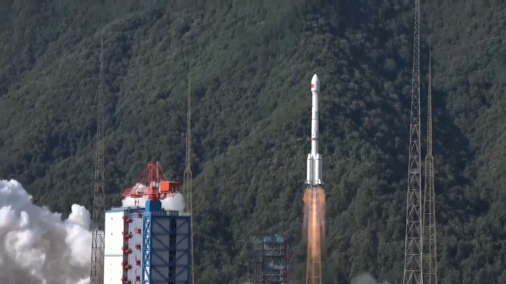 2024年5月3日17时27分,嫦娥六号探测器由长征五号遥八运载火箭在中国文昌航天发射场发射,之后准确进入地月转移轨道,发射任务取得圆满成功。新华社发(国家航天局供图)