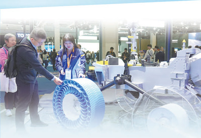 第七届中国国际进口博览会上,观众正在了解米其林月球探测车轮胎。