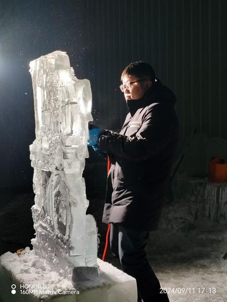 张鑫和团队正结合时下文博热,用天然有色冰来雕琢青铜器与玉璧。不久,游客就能在冰天雪地中与这些“文物”来场奇妙邂逅。“冰雪是自然的礼物,冰雕艺术则是文化的使者。”张鑫期待,深挖文化富矿,以自然为媒,以冰雪点题,让非遗在创造创新中焕发活力。