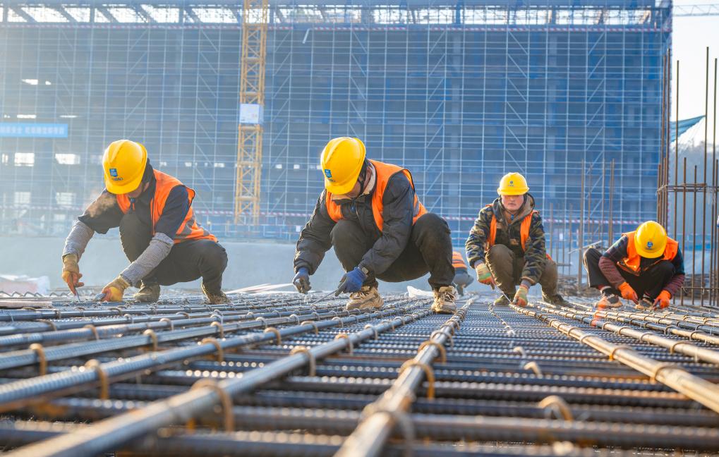 2025年1月1日,工人在安徽省芜湖市繁昌区峨山镇的安徽农业大学创新港项目工地施工。新华社发(肖本祥摄)