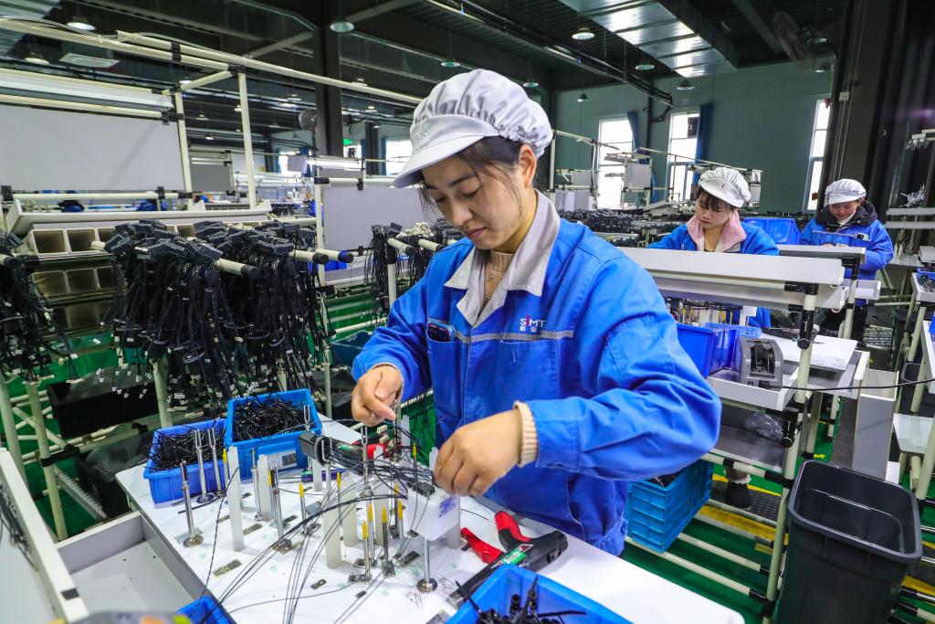 1月2日,工人在河南省信阳市光山县新宝汽车电器有限公司生产汽车配件。新年伊始,各地生产一线一派热火朝天的景象。新华社发(谢万柏摄)