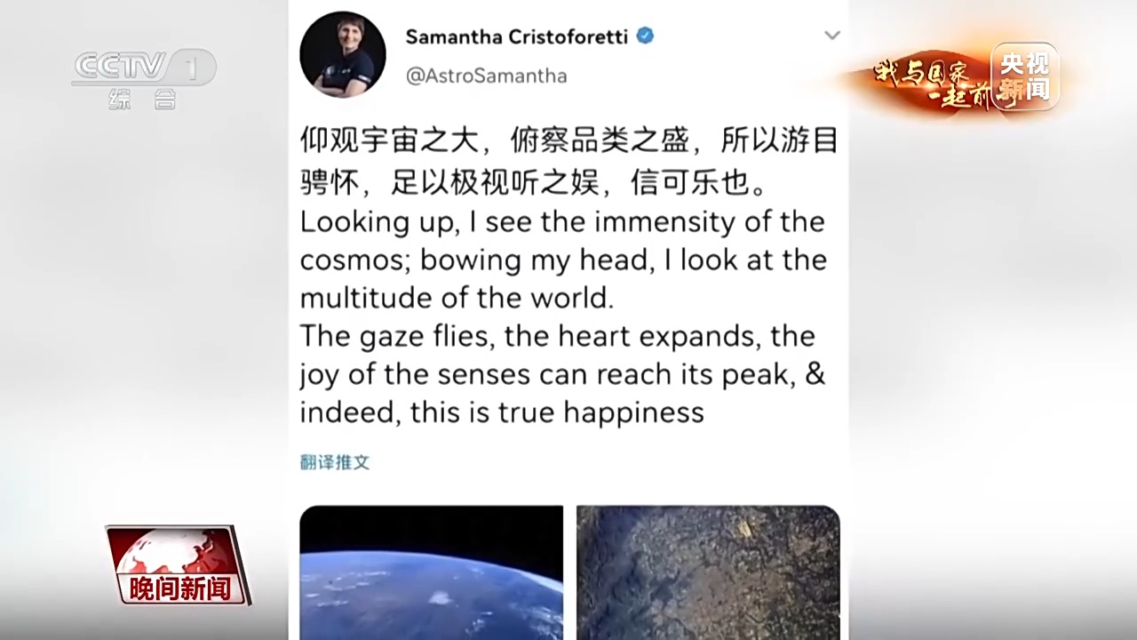 2022年,意大利女航天员萨曼萨曾经发布了一组太空摄影作品,当时配的就是这段古文。