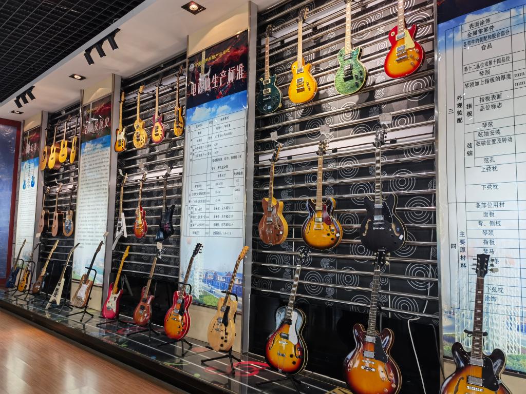 在鄌郚乐器产业发展中心,各式电吉他陈列其中。新华社记者 王志 摄