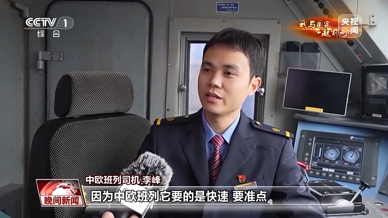 中欧班列司机 李峰:其他正常的普通货车的速度是90公里每小时,中欧班列的速度是120公里每小时。因为中欧班列要的是快速、准点,对我们机车乘务员平稳操纵的水平,要求会更严格一点。