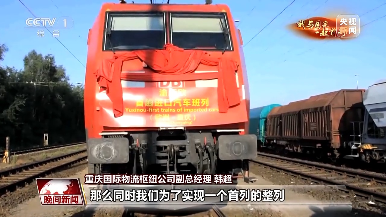 重庆国际物流枢纽公司副总经理 韩超:首个同意的是宝马公司,它同意支持我们整车口岸的开行,给予了20台进口汽车。我们马上又找到了奔驰公司,奔驰随即也表示支持,给到我们20台汽车。为了实现一个首列的整列,我们又找到了大众公司,大众给了40台车,这样形成一个80台车的专列。