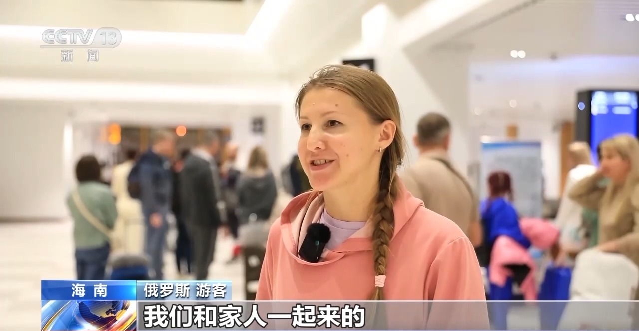 俄罗斯游客:我们和家人一起来的,我的妈妈、姐姐、侄女,我们打算在这里度假一周, 而且我们可以免签来到这里,非常赞,非常感谢友好的国家。