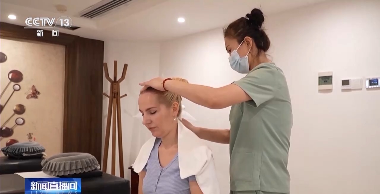 俄罗斯游客:经过咱们几天的针灸按摩,虽然说时间很短,1~2天,但是有很好的效果,他的膝盖也不痛了,然后颈椎或者腰椎都感到很放松,很缓解,非常喜欢。