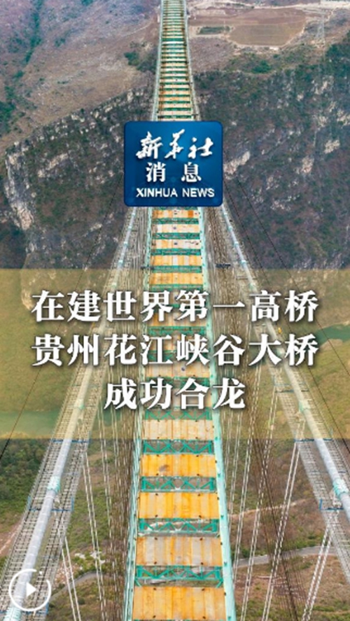 新华社消息|在建世界第一高桥贵州花江峡谷大桥成功合龙