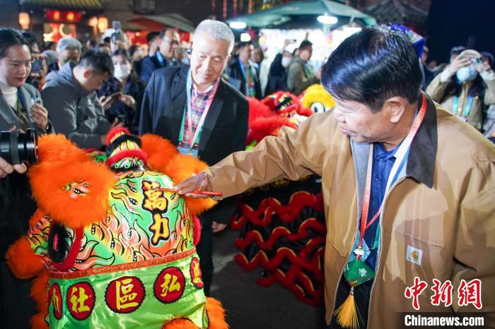 用朱砂为舞狮点睛,象征唤醒狮子,赋予其新生;揭红纸拓印“福”字;穿上戏服体验邕剧独特韵味……中国农历春节临近,参加“世界市长对话·南宁”活动的外宾们,在广西南宁历史文化街区感受中国新春民俗,探寻年味。
