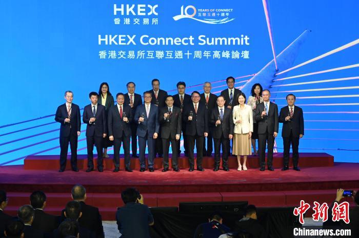 2024年11月18日,“香港交易所互联互通十周年高峰论坛”在香港金融大会堂举行。图为嘉宾出席祝酒仪式。 中新社记者 李志华 摄