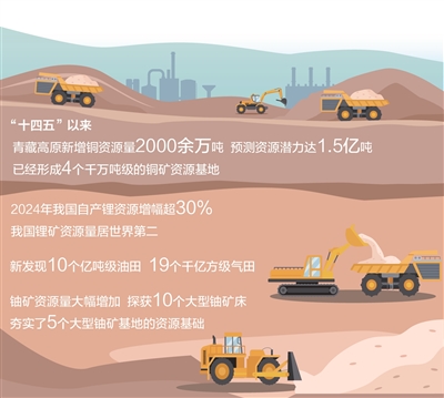 1月以来,接连传来好消息:青藏高原新增铜资源量2000余万吨,预测资源潜力达1.5亿吨;锂矿找矿取得重大突破,我国锂矿资源量跃居世界第二;鄂尔多斯盆地泾川地区取得铀矿找矿重大突破,资源量规模达特大型……