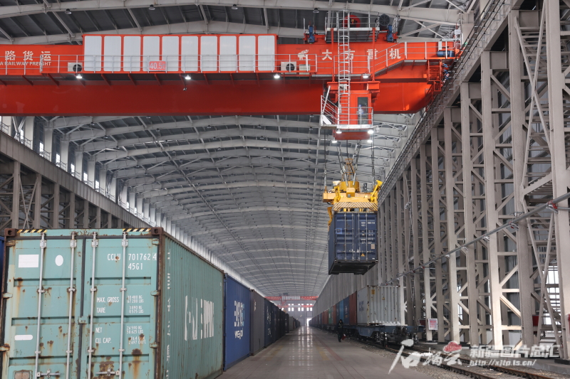 为有效解决这个问题,2008年,阿拉山口建成了第一座铁路室内集装箱换装库——“换二十三库”。自此,实现了一年365天、每天24小时不间断的换装作业,年换装能力达20万个标箱。