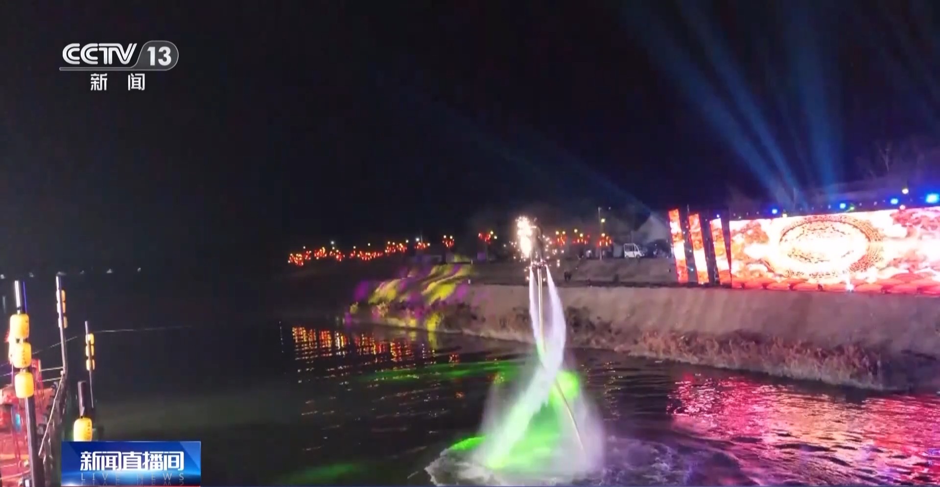 为迎接新春,古镇除了夜景灯光布置外,还有丰富的民俗表演,特别是水上火壶表演让人惊叹,表演者们身穿专业的防护服,手持火壶,从水面上腾空而起,火壶在空中划出一道道绚丽的轨迹,舞动时如同凤凰展翅,让游客沉浸在传统文化的魅力中。