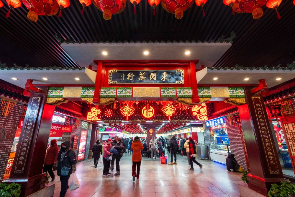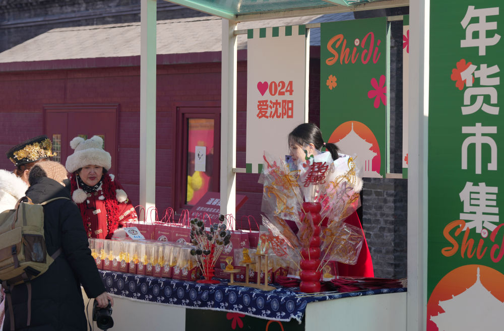 2025年1月22日,游客在沈阳故宫非遗年货市集游览消费。