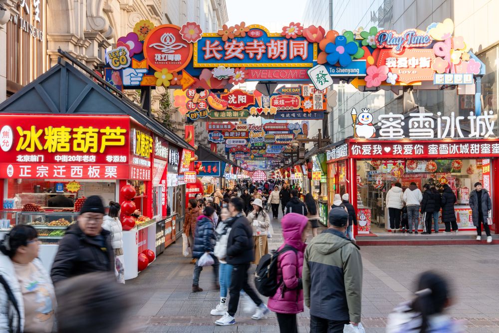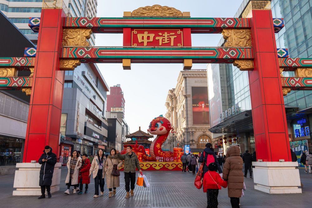 2025年1月22日,游客在沈阳中街逛街。