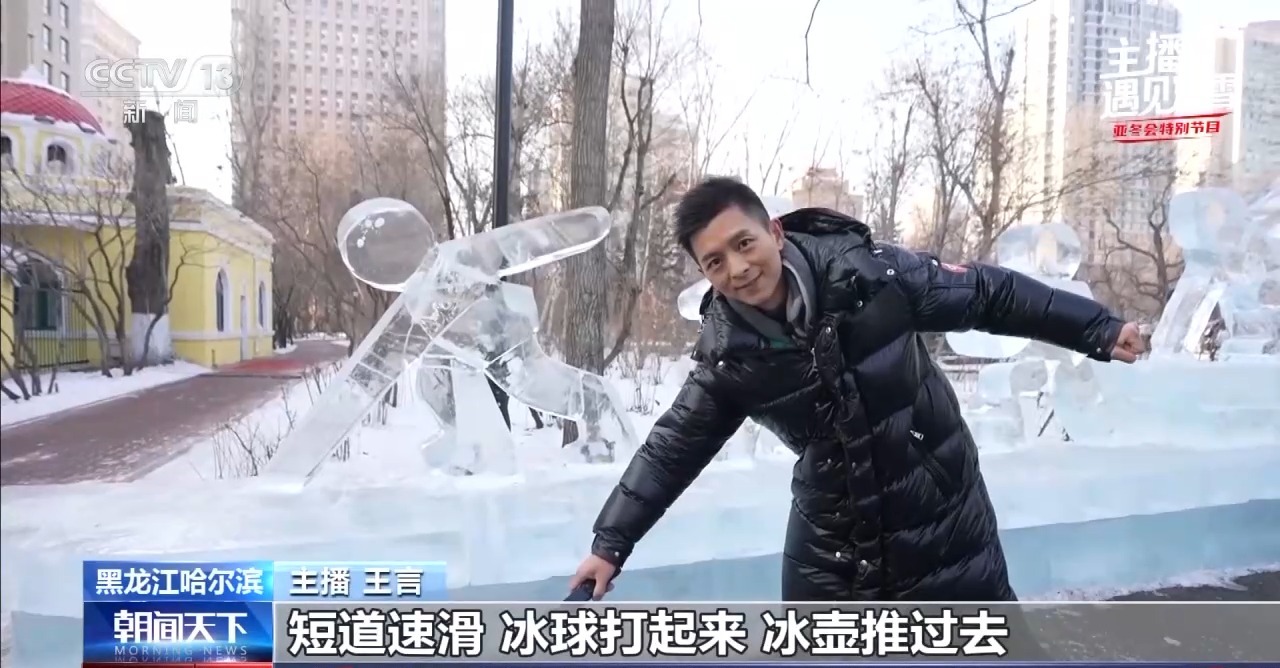 主播 王言:兆麟公园正在举办第51届冰灯艺术游园会。亚冬会的元素,现在真是在哈尔滨的大街小巷随处可见。