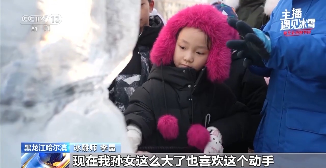 冰雕师 李晶:我儿子像孙女这么大点我就带他来,现在我孙女这么大了也喜欢动手,所以把她带过来。