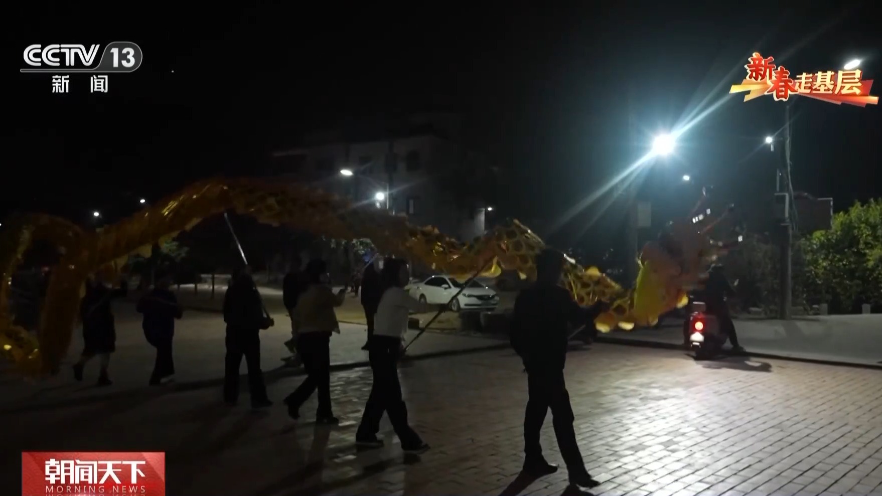 晚上9点,舞龙队来到土楼后进行了排练。工作人员悬着的心终于放下了。