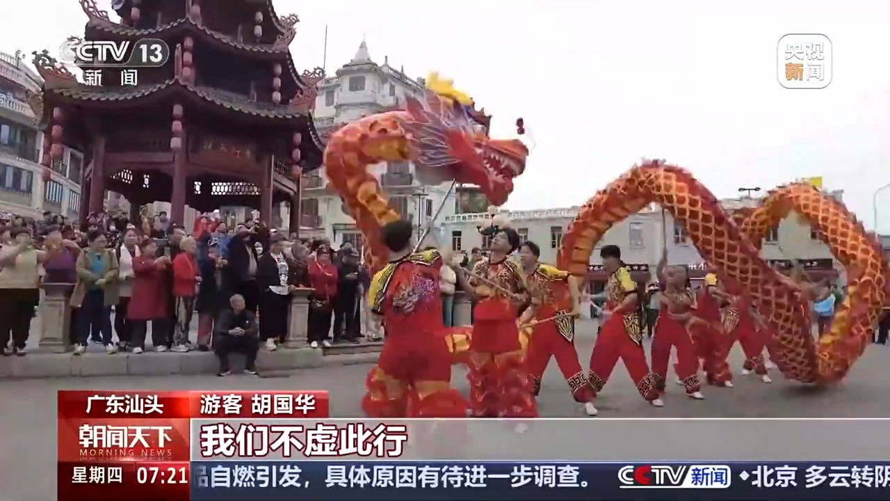 广东汕头游客 胡国华:我们慕名而来,潮汕文化,慕名而来。过年气氛特别好,我们俩不虚此行。