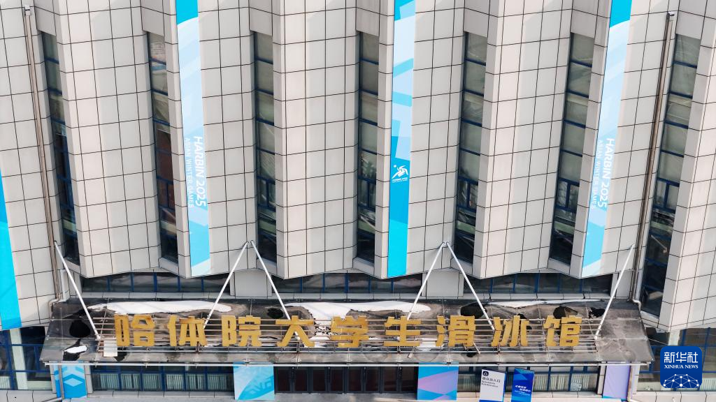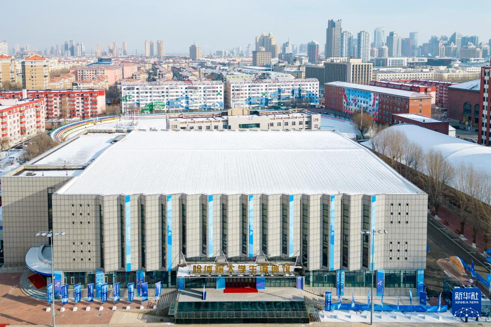 这是1月27日拍摄的哈尔滨体育学院大学生滑冰馆(女子冰球比赛场馆)(无人机照片)。