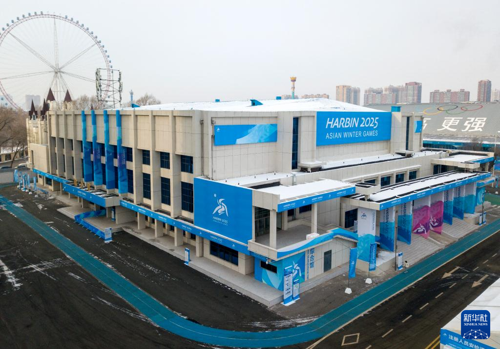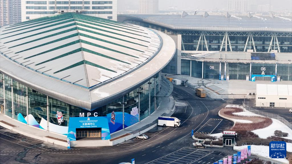 这是1月21日拍摄的哈尔滨2025年第九届亚冬会主新闻中心(无人机照片)。