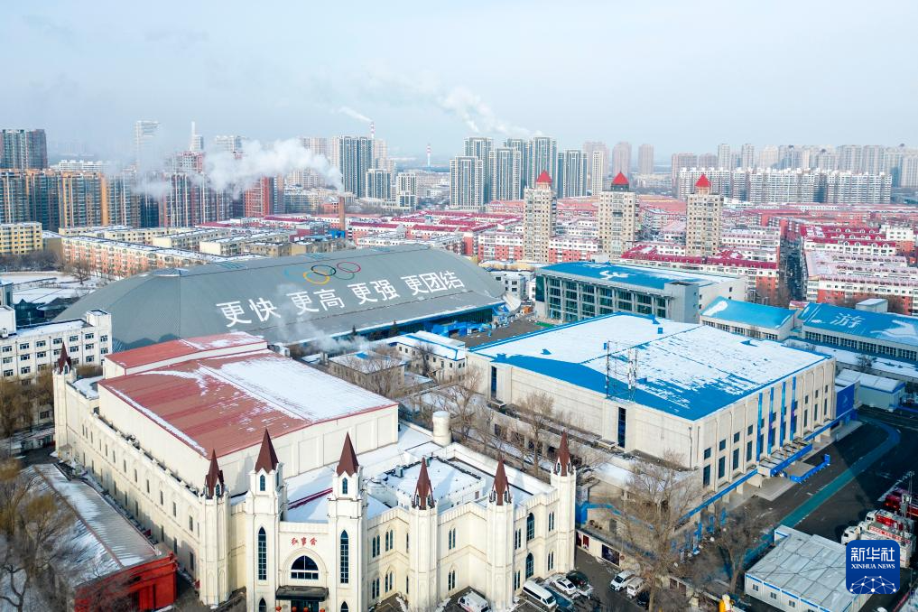这是1月21日拍摄的哈尔滨市冰球馆(男子冰球比赛场馆)(无人机照片)。