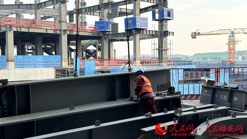 雄安国贸中心项目三工区施工现场。人民网记者 刘师豪摄